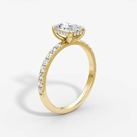The Classic Hidden Halo Radiant Engagement Ring in Pave Standard Band