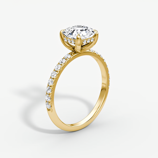 The Classic Hidden Halo Asscher Engagement Ring in Pave Standard Band