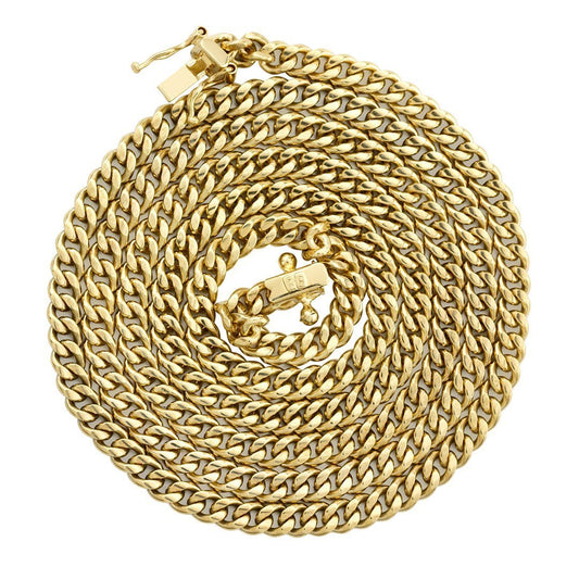14k Yellow Gold Solid Mens Cuban Link Chain 4 mm