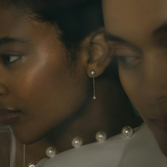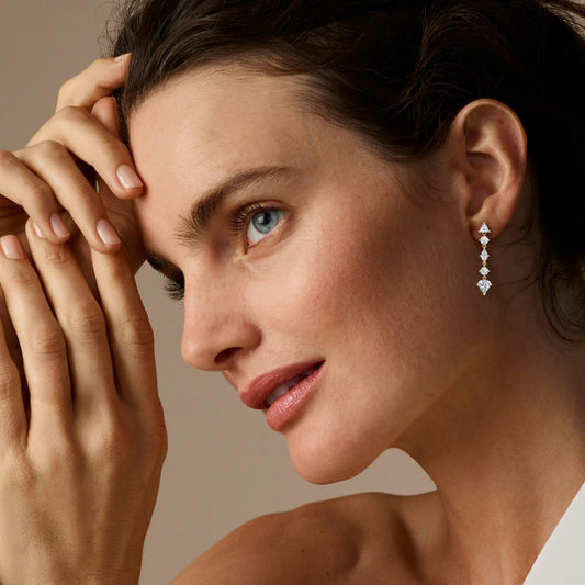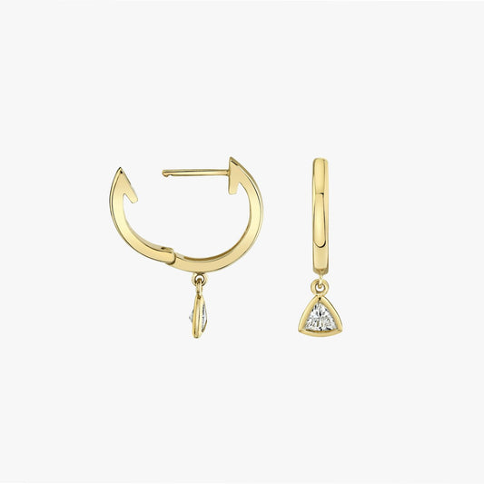 Trillion Knife-Edge Bezel Drop Huggie Hoop