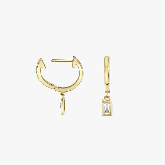 Baguette Knife-Edge Bezel Drop Huggie Hoop