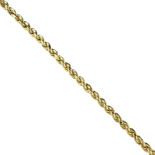 10k Yellow Gold Hollow Rope Chain 7.5 mm