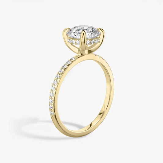 The Classic Hidden Halo Round Brilliant Engagement Ring in Pave Standard Band and Pave Prong