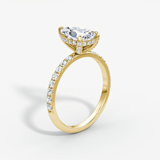 The Classic Hidden Halo Pear Engagement Ring in Pave Standard Band