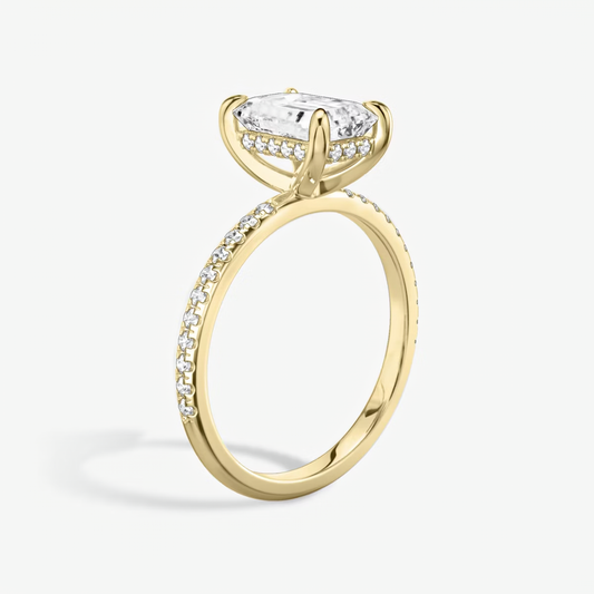 The Classic Hidden Halo Emerald Engagement Ring in Pave Standard Band