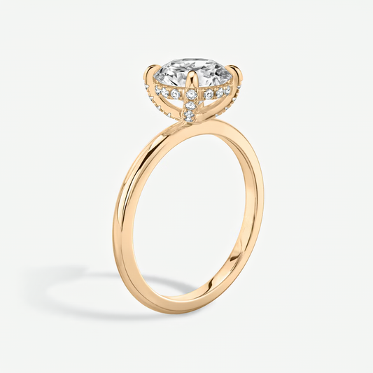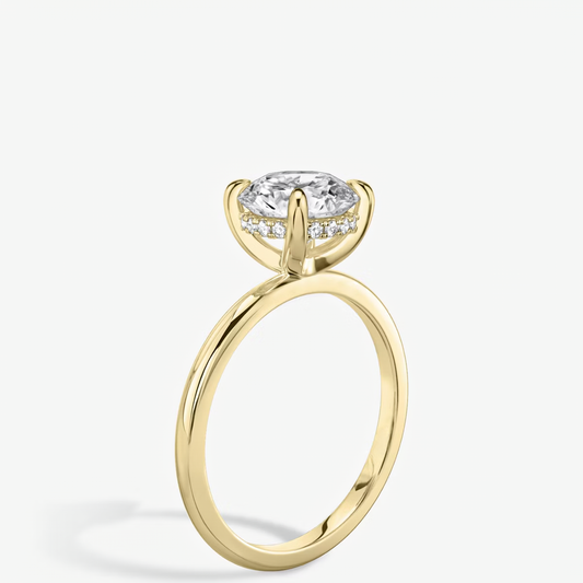 The Classic Hidden Halo Round Brilliant Engagement Ring in Plain Standard Band and Pave Prong