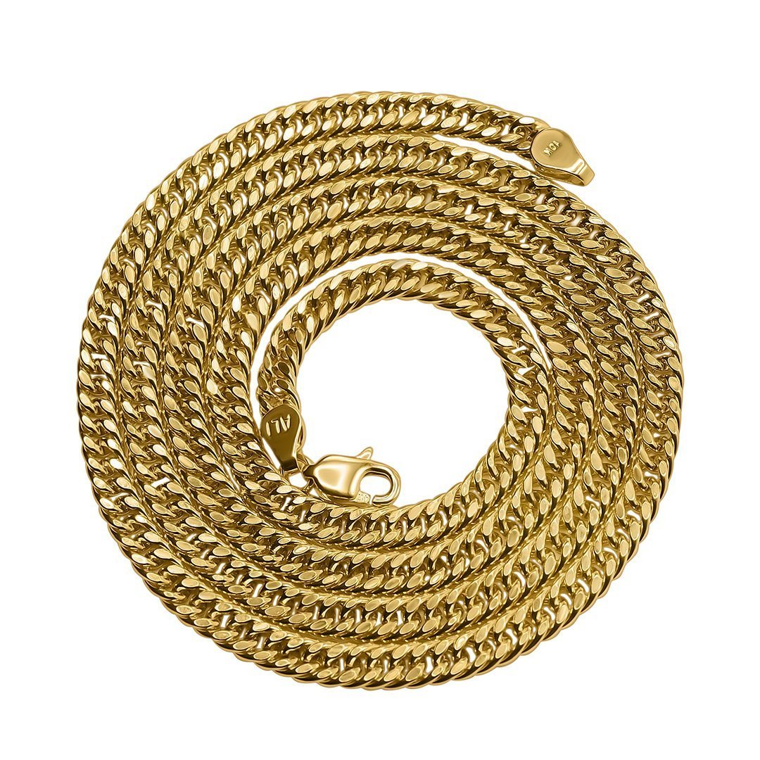 This mens cuban chain is handcrafted in a stunning 10k Yellow Gold. It measures 4 mm in width. This mens cuban chain securely locks with a lobster clasp. This chain is made out of lustrous solid 10k gold but includes hollow link to complete a larger look.