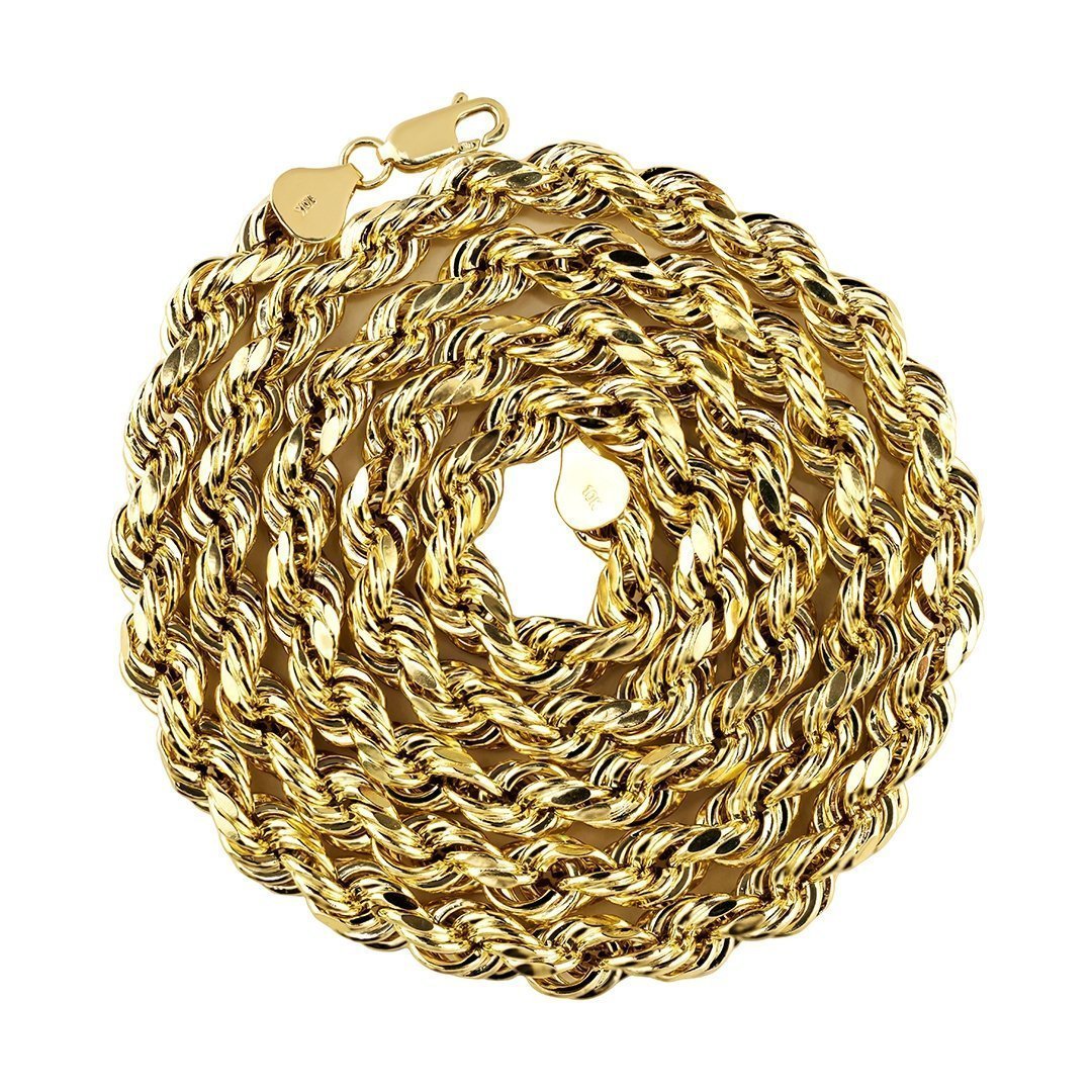 10k Yellow Gold Hollow Rope Chain 7.5 mm