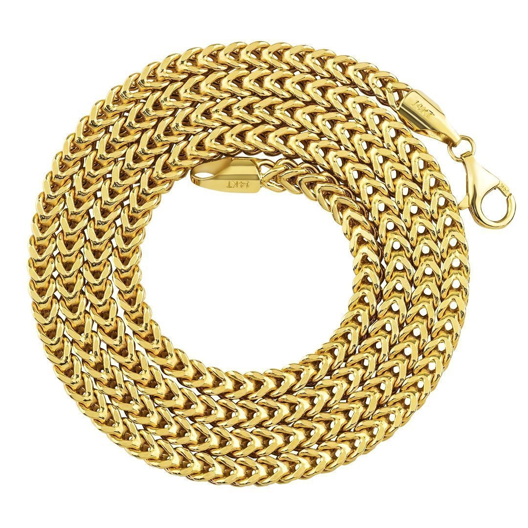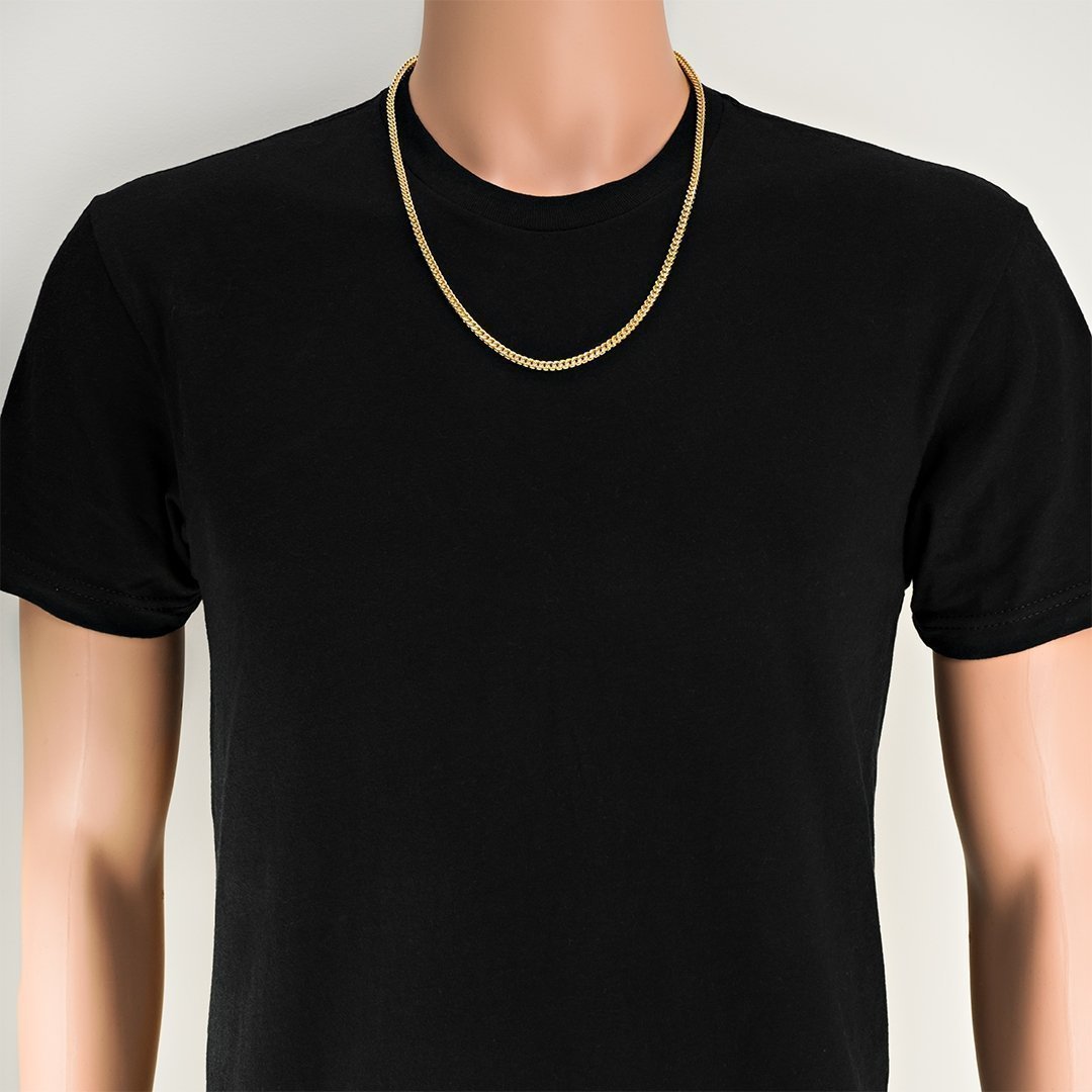 This mens franco chain is handcrafted in lustrous 14k yellow gold. The frame measures to 24" in length and 3mm in width. Weighing 20.7 grams, this chain is an ideal accessory at an affordable value.