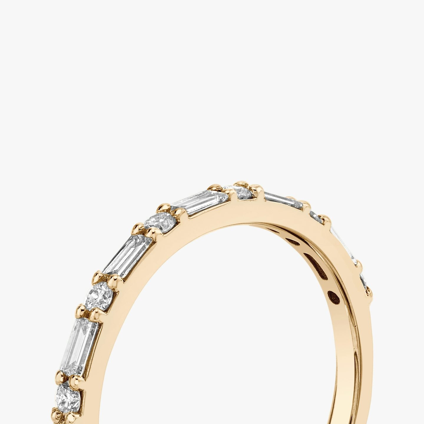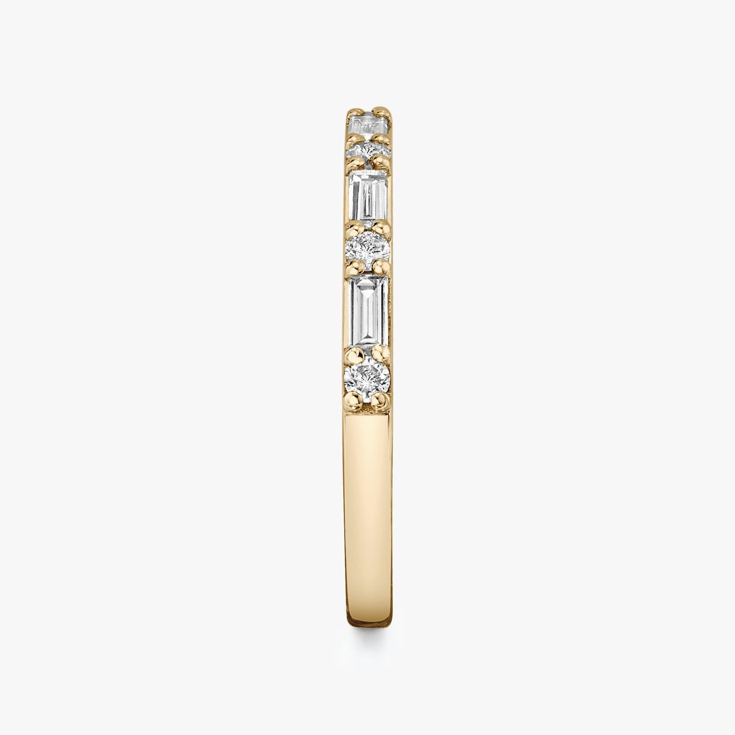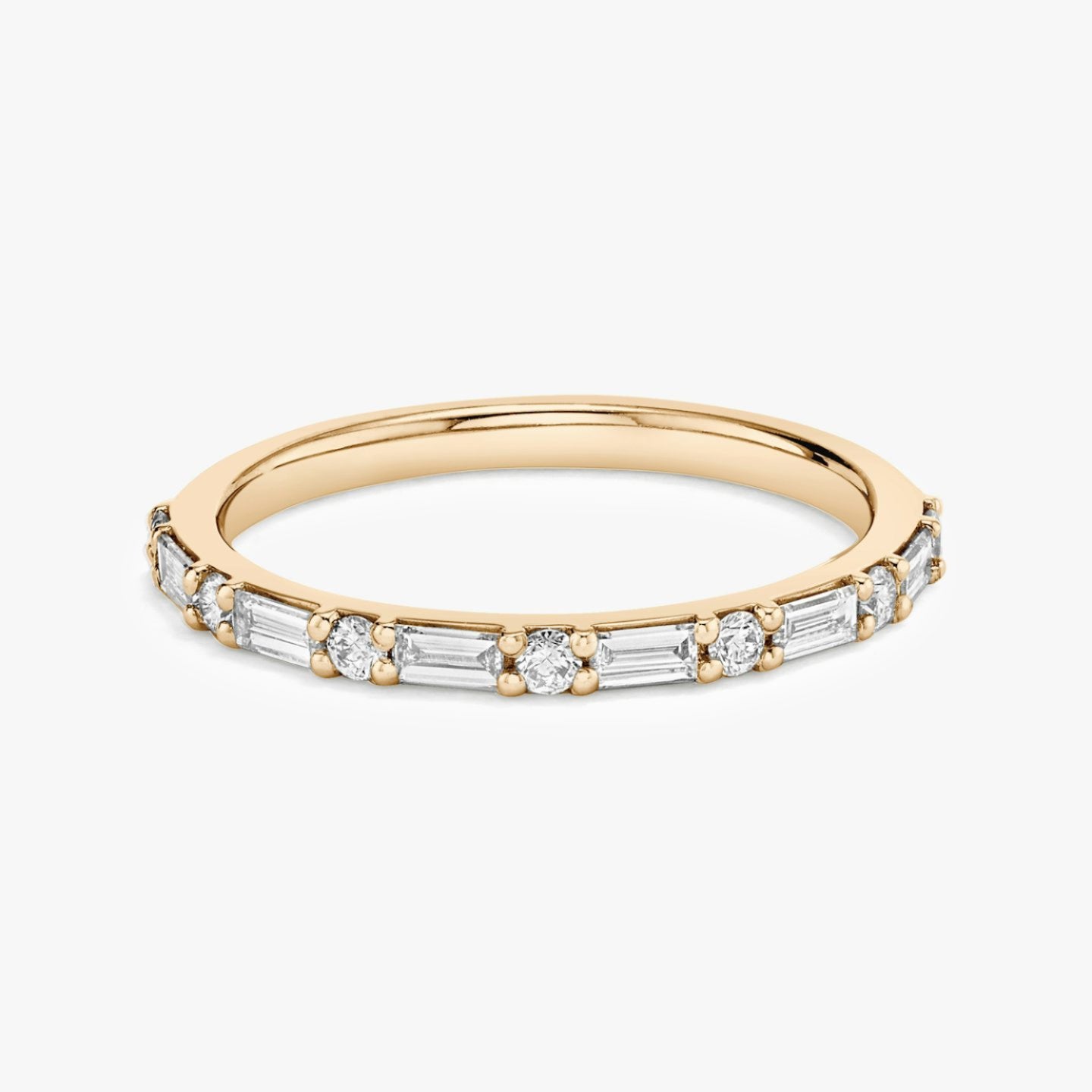 In this meticulously crafted all-diamond design, Baguette and Round Brilliant lab-grown diamonds are arranged side by side. The array of alternating diamond shapes is securely set in either platinum or solid gold prong settings, showcasing their beauty and brilliance to the fullest.