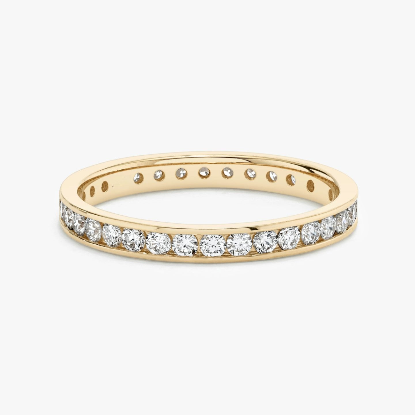 Celebrate your commitment to another or to yourself with a band that serves as a daily emblem of your dedication. A sequence of lab-grown Round Brilliant or baguette-shaped diamonds are nestled within a channel set band of platinum or solid gold, offering a manifestation of perpetual elegance.