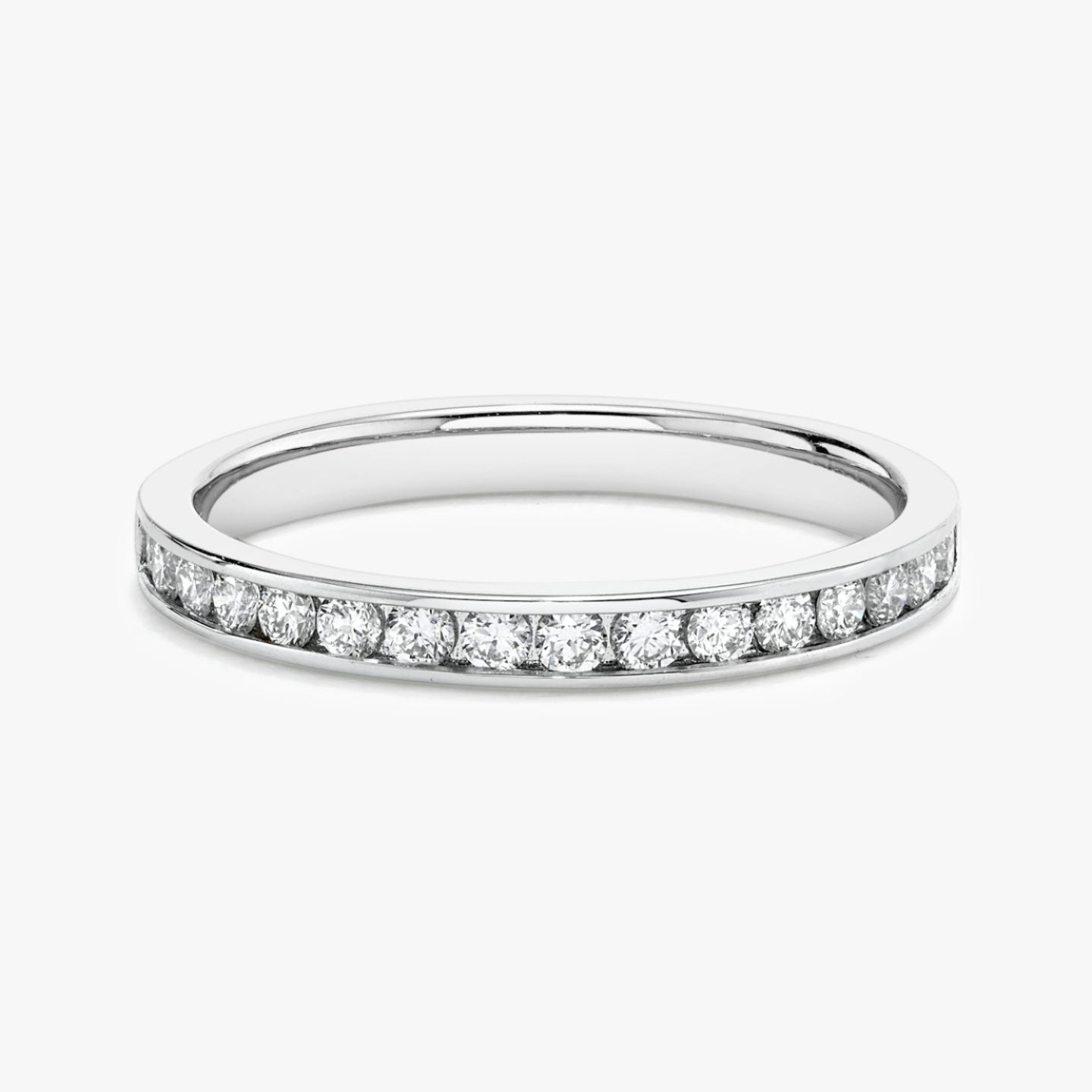 Celebrate your commitment to another or to yourself with a band that serves as a daily emblem of your dedication. A sequence of lab-grown Round Brilliant or Baguette shaped diamonds are nestled within a channel set band of platinum or solid gold, offering a manifestation of perpetual elegance.