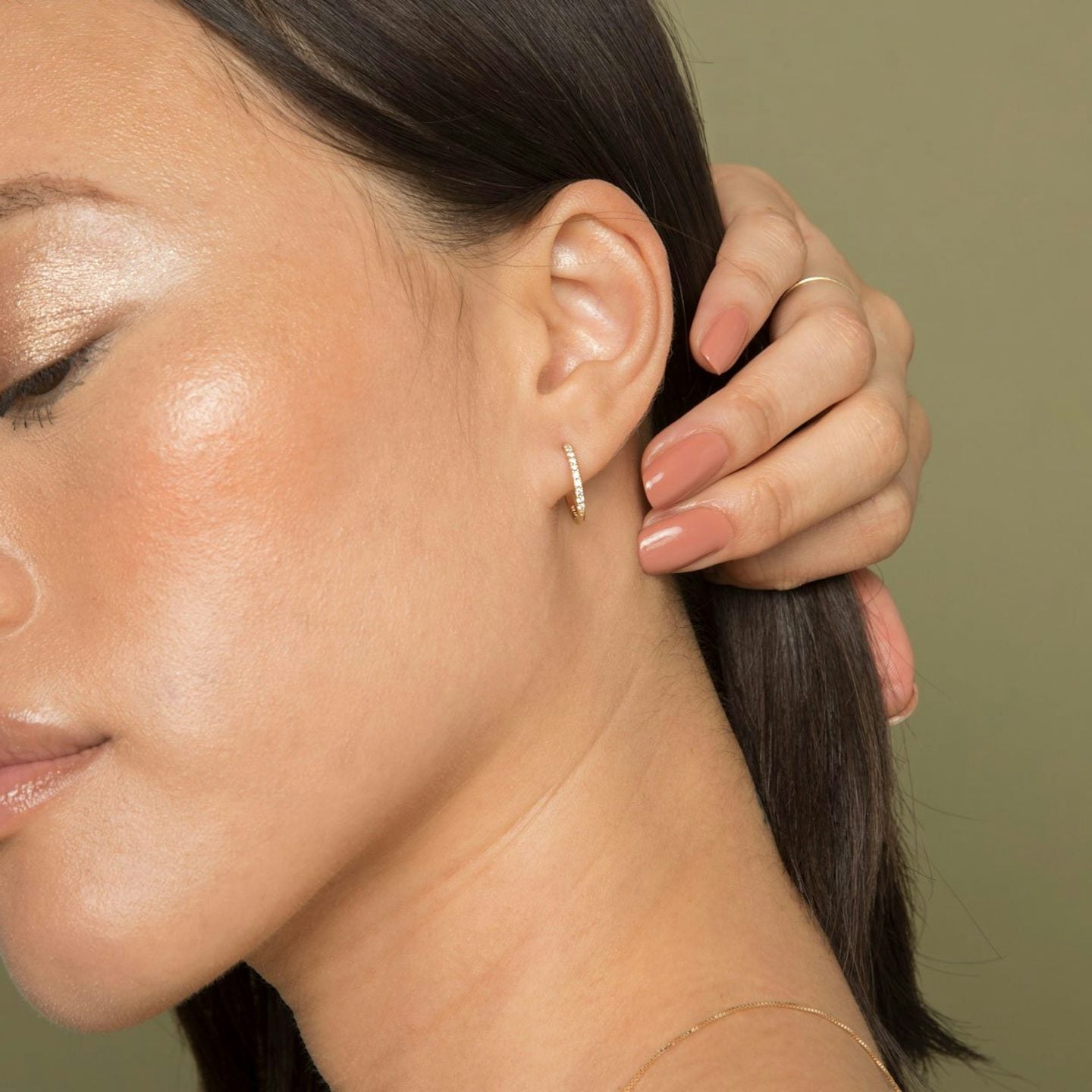 Effortlessly elegant staples for any look. Solid gold or sterling silver hoops sparkle with pavé lab-grown diamonds. Large hoops are ideal for solo wear or first piercings, while petite and medium sizes hug the lobe, perfect for stacking and second piercings.
