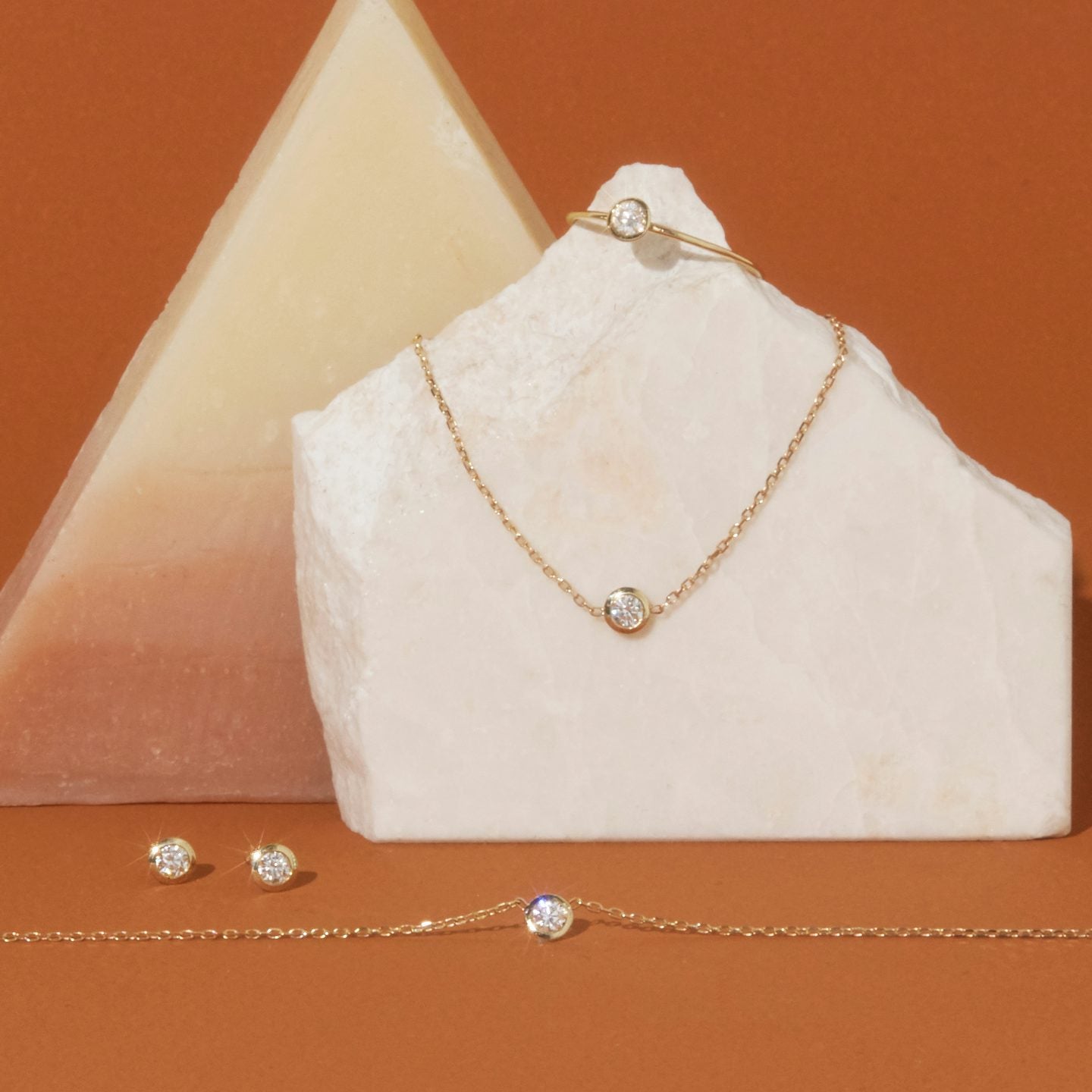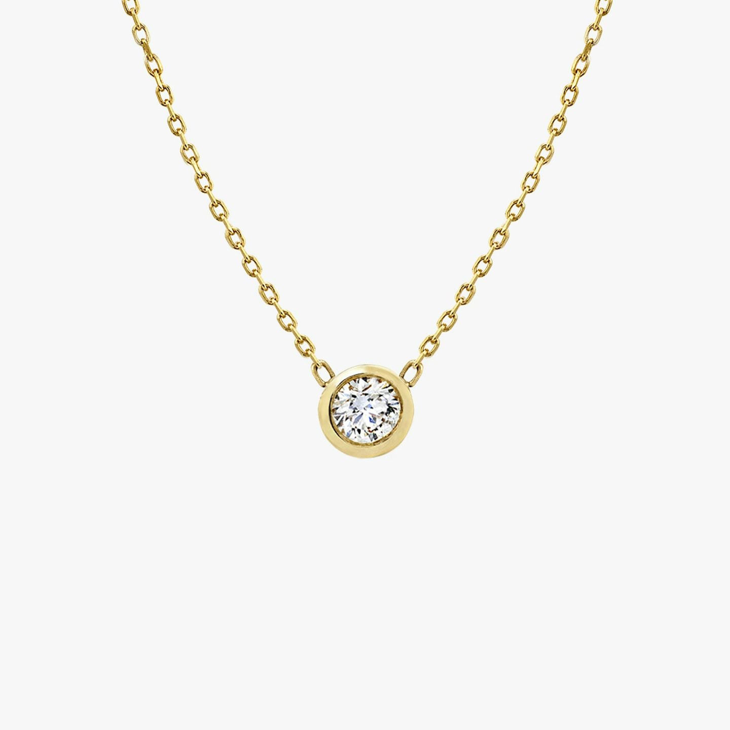 With a symmetrical structure that highlights clarity and depth, the Diamond Knife-Edge Bezel Necklace showcases a delicate diamond perfectly balanced within a minimal gold rim. The signature knife-edge bezel setting reflects light in every direction, ensuring your diamond shines as brightly as you do.