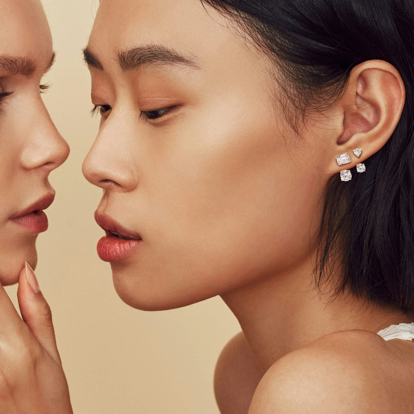A subtle yet statement-making piece, the VVS Solitaire Drop Ear Jacket transforms timeless staples into unique, modern looks. Perfectly set to catch light from all angles, it complements any VVS Solitaire Stud.
