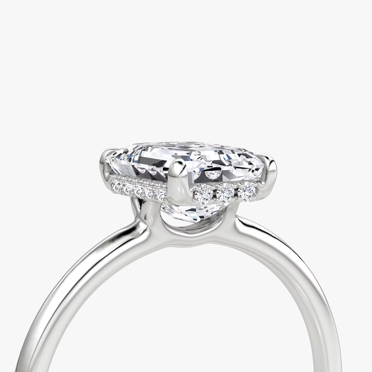 The Signature embodies the timeless elegance of a classic solitaire engagement ring. Crafted to rest low on your finger and align seamlessly with your wedding band, our distinctive sling subtly dips below the band, capturing light to make your diamond sparkle brilliantly.