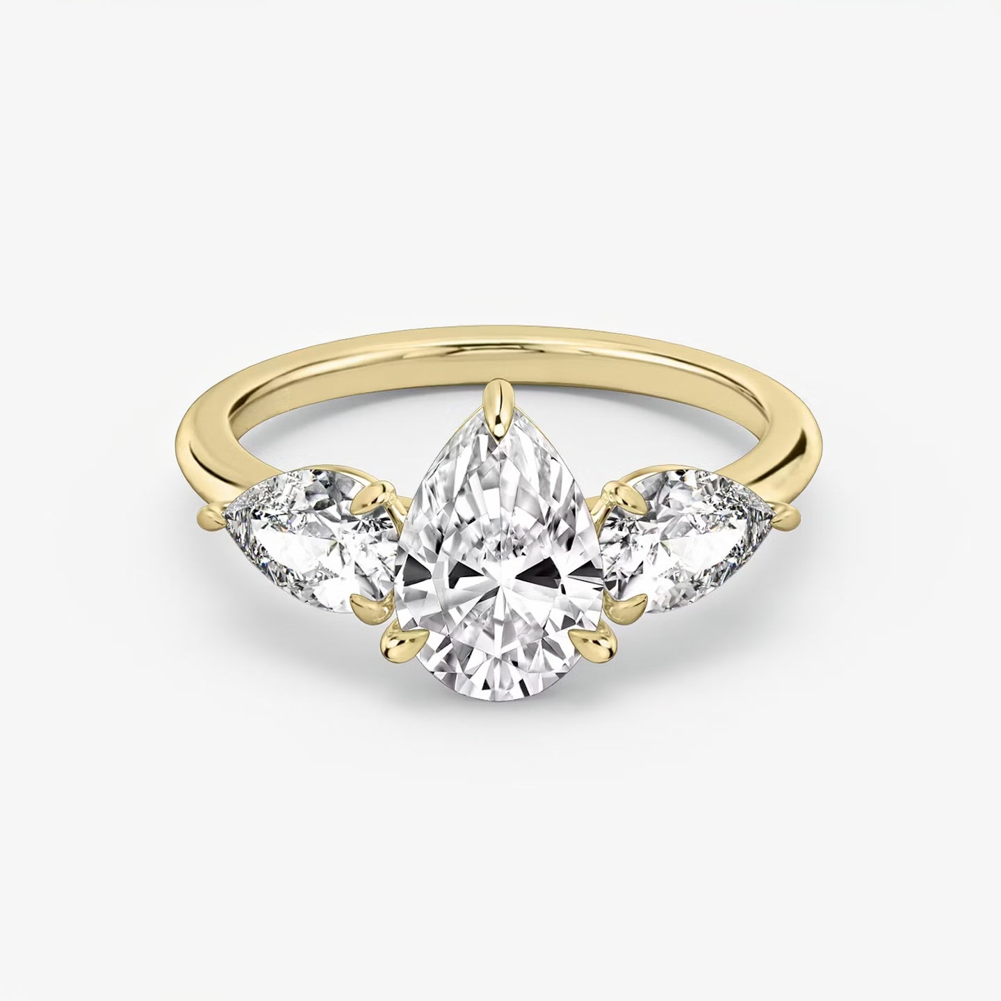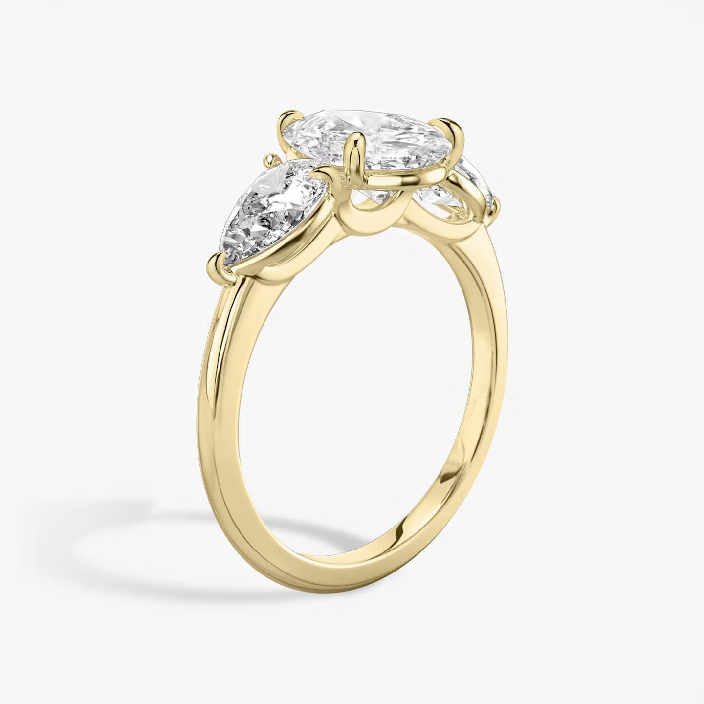 Our Three Stone engagement ring boasts two stunning side stones that amplify the radiance of the lab grown center diamond, symbolizing the past, present, and future of your relationship. Featuring secure, contoured cusps and a signature low-set sling, this setting allows your love story to shine brilliantly.