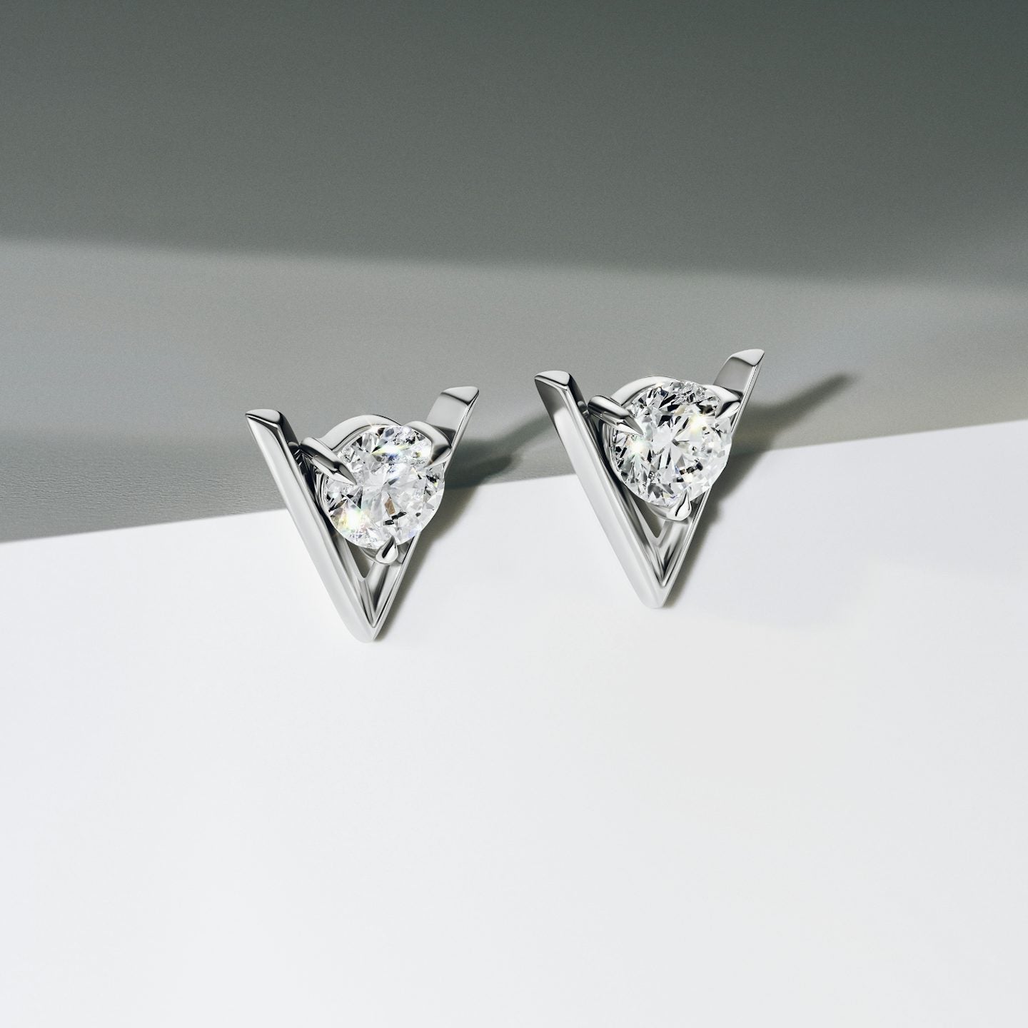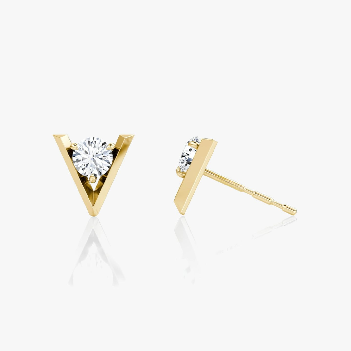 A design that redefines timeless elegance. Drawing inspiration from VVS’s iconic motif, the VVS V Solitaire Studs showcase a solid gold or sterling silver knife-edge V that elevates and secures a Round Brilliant lab-grown diamond. The V adds dramatic depth while ensuring the center stone is visible from every angle, guaranteeing a brilliant shine.