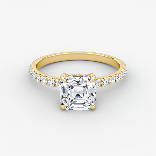 The Classic Hidden Halo Asscher Engagement Ring in Pave Large Band